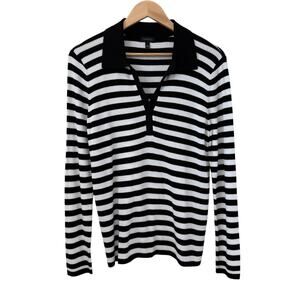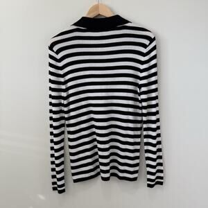 Talbots Size L Ribbed Knit Johnny Collar Pullover Mariner Stripe Top Black White
