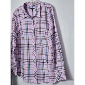 Talbots Size Large Casual Pink Plaid Button Down Long Sleeve Collared Shirt Top
