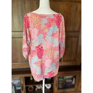 Talbots Size Large Knit Blouse 3/4 Sleeves Pink Blue Floral