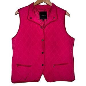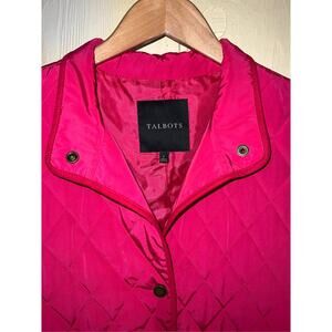 Talbots Size Large Quilted VEST Pink Diamond Wool Blend Snap Front 12 /14 Berry