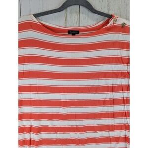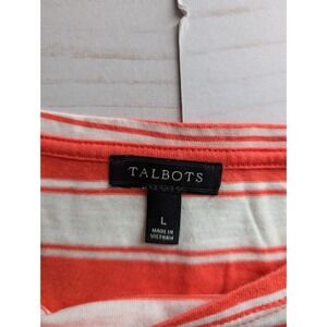 Talbots Size Large Womens Red White Striped Short Sleeve Top