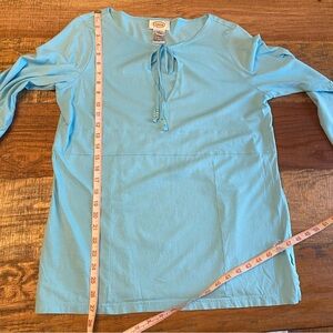 Talbots Size Large shirt top Knit Keyhole Tassel 3/4 Sleeve Top