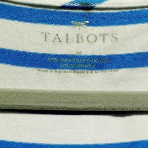 Talbot's Women's Size M Coastal Blue and White Striped Summer Boat V Neck 3/4 Sleeves. Shoulder to Hem 26" Pit to Pit 18". Measurements Approx