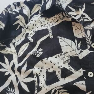 Talbots Size M Cotton Button Front Shirt Tropical Panther Black White Collared
