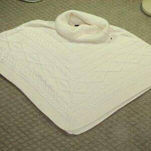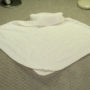 Talbots Size M Ivory Cable Knit Cowl Neck Triangle Poncho Sweater Cotton Blend