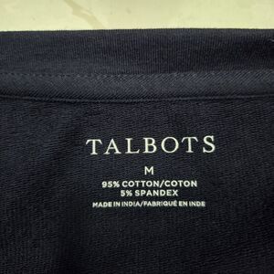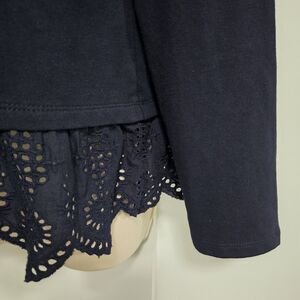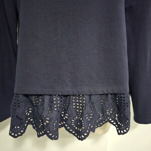 Talbots Size M Navy Blue Cotton Blend Solid Long Sleeve Eyelet Trim Tunic Top