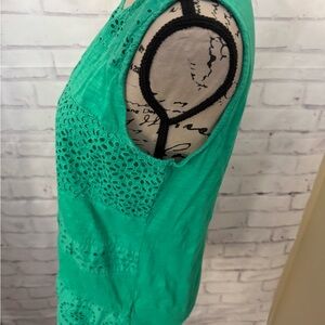 Talbots Size Med Eyelet Green Tank Shell Cotton Sleeveless Top