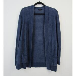 Talbots Size Medium 100% Linen Blue Open Front Cardigan Pockets Coastal
