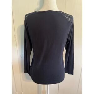 Talbots Size Medium Long Sleeve 100% Cotton Pullover Top Navy Blue