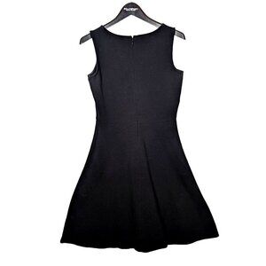 Super comfortable stretchy jersey type fabric with subtle, horizontal micro-pleats lots of range of motion. Perfect for summer. Simple and elegant, this makes a great basic piece for any wardrobe. Zipper back. Simple and cute fit and flare cut. Excellent condition with virtually no signs of cosmetic wear.