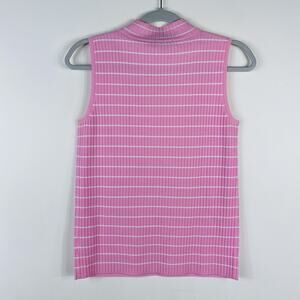 Talbots Size Small Striped Sleeveless Ribbed Mockneck Sweater Pink White