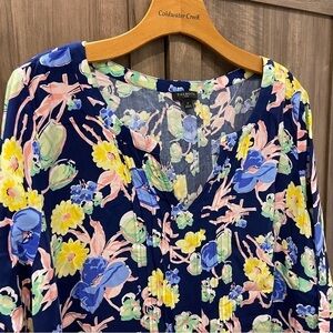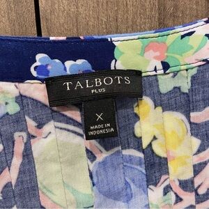 Talbots Size X Popover Shirt Top 3/4 sleeves blue floral