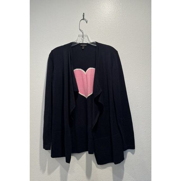 Talbots Size XS Open Front Open Cardigan Navy Pink Heart On Back Valentines Boho