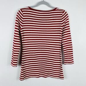 Talbots Size XS Striped Snowflake Embellished T-Shirt Tee Top Red White
