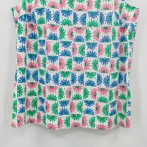 Talbots Size XS Sleeveless Eyelet Floral Button Back Cotton Tank Top Blouse