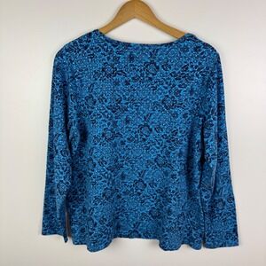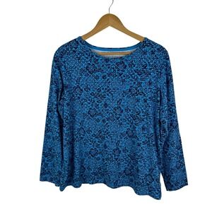 Talbots Sketched Floral Crewneck Tee Size 1X Blue Cotton Stretch Comfort Layers