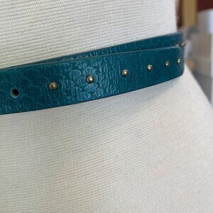 Talbots Skinny green leather belt Size Medium NEW Gold studs