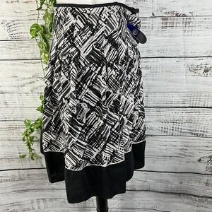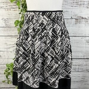 Talbots Skirt 6 Petite Black White Silk Pleated Knee Modest Career Wedding Slim