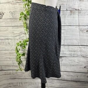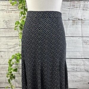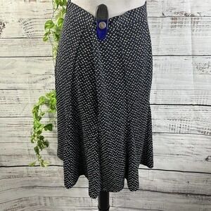 Talbots Skirt 8 Navy Blue Polka Dots Knee Flared A Line Slinky Stretch Modest