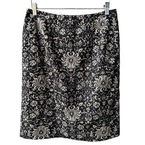 Talbots Skirt Black Tan Floral Cocktail Party Business Casual Preppy Academia 8