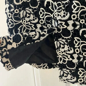 Talbots Skirt Black @ White Floral Embroidered Lace Overlay Lined Pencil Size 10