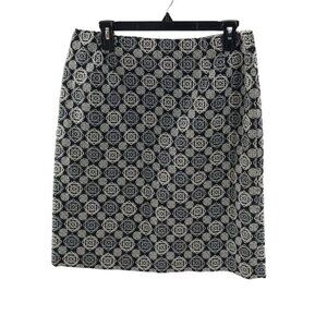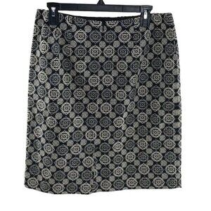 Talbots Skirt Black White Geometric Embroidered Straight Womens Size 12 Petite