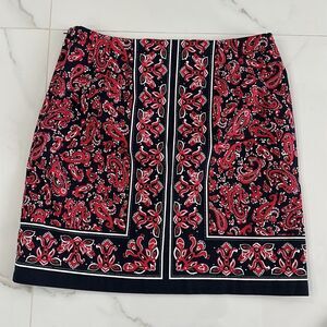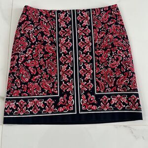 Talbots Skirt Navy/Red/White Paisley Print. Size 10
