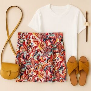💬 Beautiful cotton-blend printed skirt, size 16. Vibrant paisley print in bold red and orange tones—perfect for summer style, office polish, or travel looks. In excellent condition. Preloved at $25 with Best Offer encouraged!