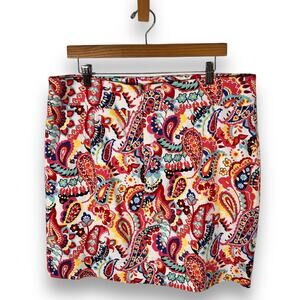 Talbots Skirt Multicolor Paisley Twill Red Orange Size 16