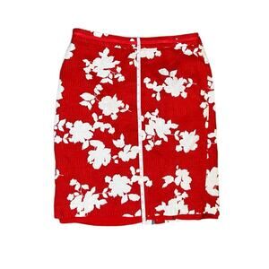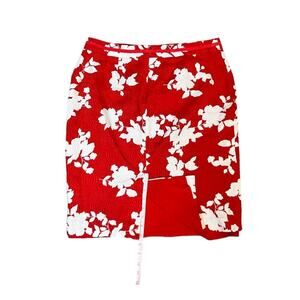 Talbots Skirt Red and White Floral Above the Knee Size 12 100% Cotton
