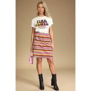 Description: Talbots Women's Sz 6 Pink Green Striped Linen Blend Pencil Skirt Lined Career