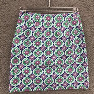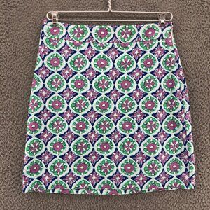 Talbots Skirt Women 2 Petite Multicolor Floral Mini Straight Pencil Stretch Work