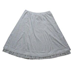 Talbots Skirt Womens XL White Midi Eyelet Ruffle Pull On Prairie Peasant Cottage