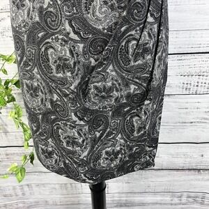 Talbots Skirt size 10 Petite Black Gray Wool Paisley Wrap Straight Knee Boho