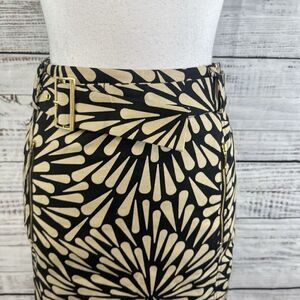 Talbots Skirt size 8 Petite Black Brown Floral Pencil Knee Belt Stretch Pockets