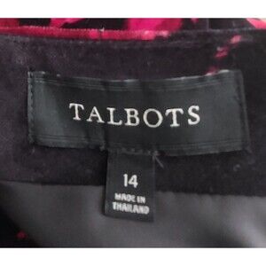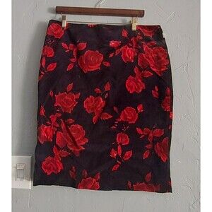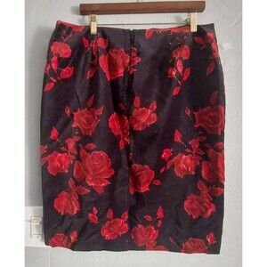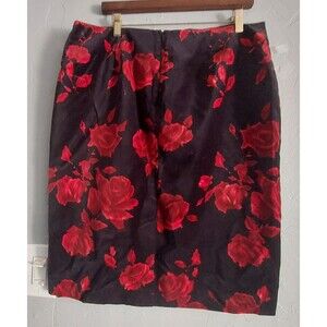 This Talbots skirt is a size 14, featuring a floral velvet fabric with a pencil style and knee-length design. The skirt has a high rise and a black and red color scheme, giving off a vintage vibe reminiscent of the 90s bohemian and hippie themes. It is accented with a zipper closure and is suitable for casual,34 inch waist and 24 inch Long, beautiful shirt Excellent Condition. formal, or business occasions, making it versatile for various seasons like winter, summer, and spring. Made of polyester and cotton in Thailand, this skirt is a stylish addition to any wardrobe.