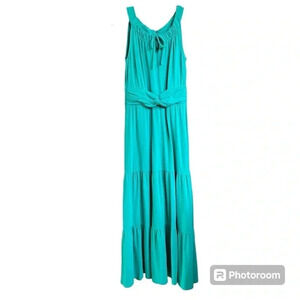 Talbots Sleeveless Aqua Color Soft Knit Maxi Dress Petites Size P Tiered Flowy