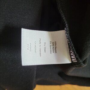 This sleeveless black dress by Talbots offers a sophisticated look with a touch of contrast provided by the white trim. Perfect for professional settings or formal events, it is crafted from a comfortable blend of rayon, nylon, and spandex for a flattering fit.