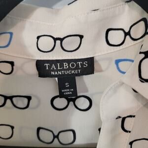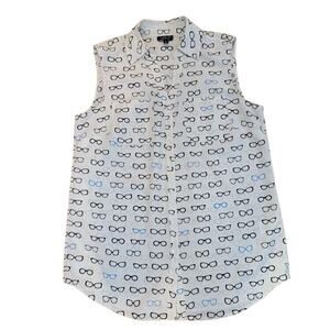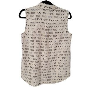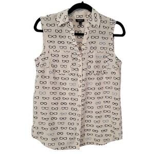 Talbots Sleeveless Blouse Women's Sz Small Eyeglass Logo White Black Whimsical