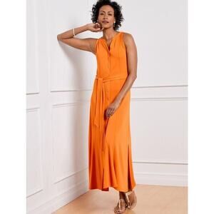 Talbots Sleeveless Button Front Maxi Dress Womens Medium Tie Belt Side Slit NWOT