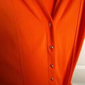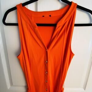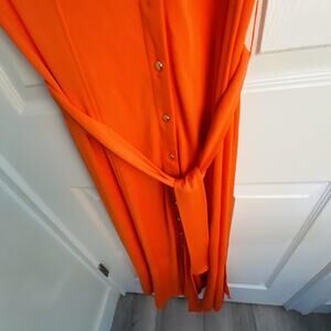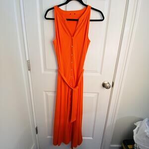 Sleeveless Button Front Maxi Dress Womens Medium Orange Tie Belt Side Slit Vneck