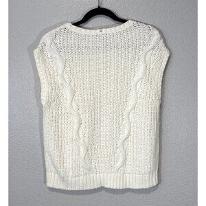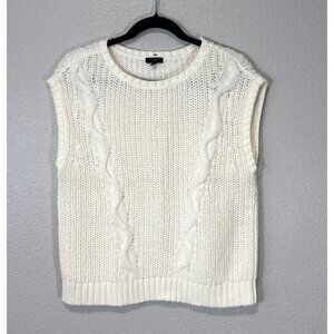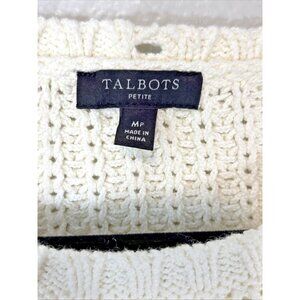 Talbots Sleeveless Cable Knit Sweater Sz PM White Round Neck Stretch Casual Top