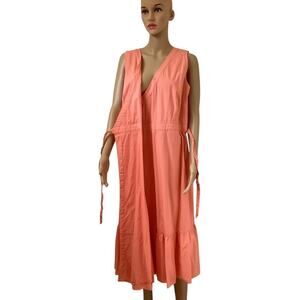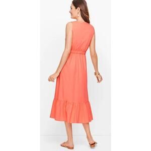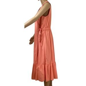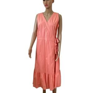 Talbots Sleeveless Peachy Orange V-Neck Poplin Wrap Midi Dress size 12/XL