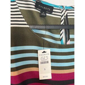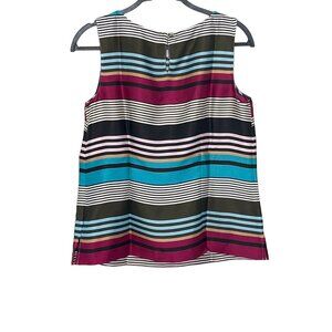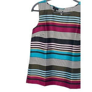 Talbots Sleeveless Satin Blouse Small Striped Blue Green Pink Shell Career Top
