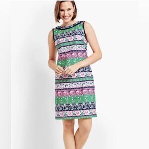 Talbots Sleeveless Shift Dress Green Pink Size 8