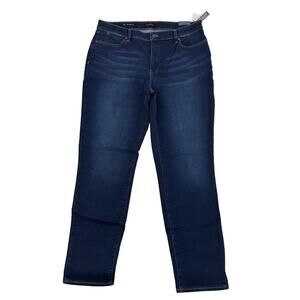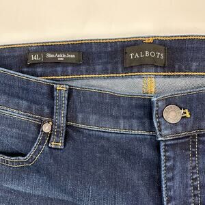 Talbots Slim Ankle Dark Wash Jeans Womens 14L Blue Denim Mid Rise Cotton Blend