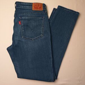 Dark wash, slim leg, ankle length, 11.5" rise.