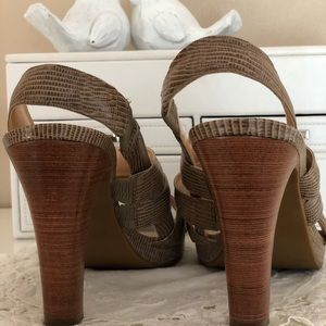Talbots sling back heels that have 4” inch thicker heel. In like new condition. Color is called Desert Sand. Two tone color.