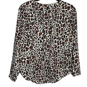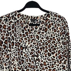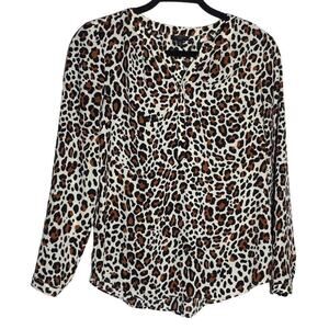 Talbots Slouchy Leopard Print Blouse Small Petite Brown Black Cream Multicolor. Crisp Leopard Print. Button-Up Sleeves, Notched Neckline.