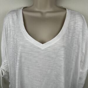 Talbots Slubbed Knit Top Shirt Cotton Modal Tie Detail White 3XP Petite Classic